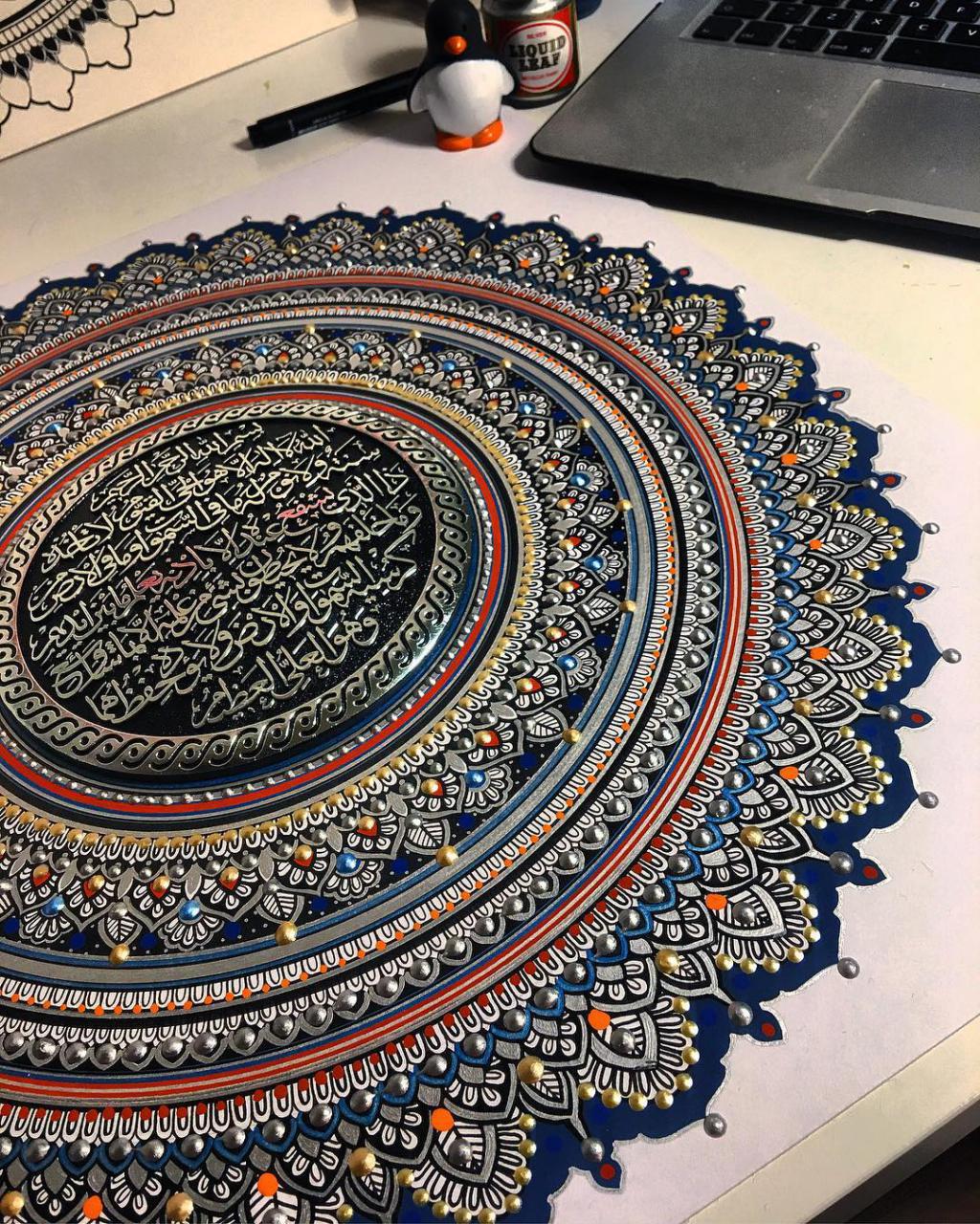 تزیین آیات قرآن با طرح های ماندالا و میناکاری توسط Asmahan Rose Mosleh