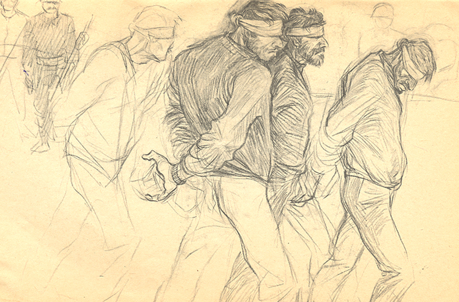 ج: کانون نویسندگان، محلی بود که ما با آن ارتباط داشتیم و نمایشگاهی هم در آنجا گذاشتم. وقتی آن نمایشگاه در کانون نویسندگان برگزار شد، آقای شاملو کارهایم را دید و پسندید و خواست که در کتاب جمعه طراحیهایم را چاپ کند. متأسفانه هیچکدام از کارهای آن دورهام به جا نمانده است. حتی طراحیهایم را در پوشهای گذاشته بودم که آنها هم از بین رفت یا به آتش کشیده شد. چیزی که از این دوره مانده همان ۱۶ طرحی است که آقای شاملو در کتاب جمعه چاپ کرد.
