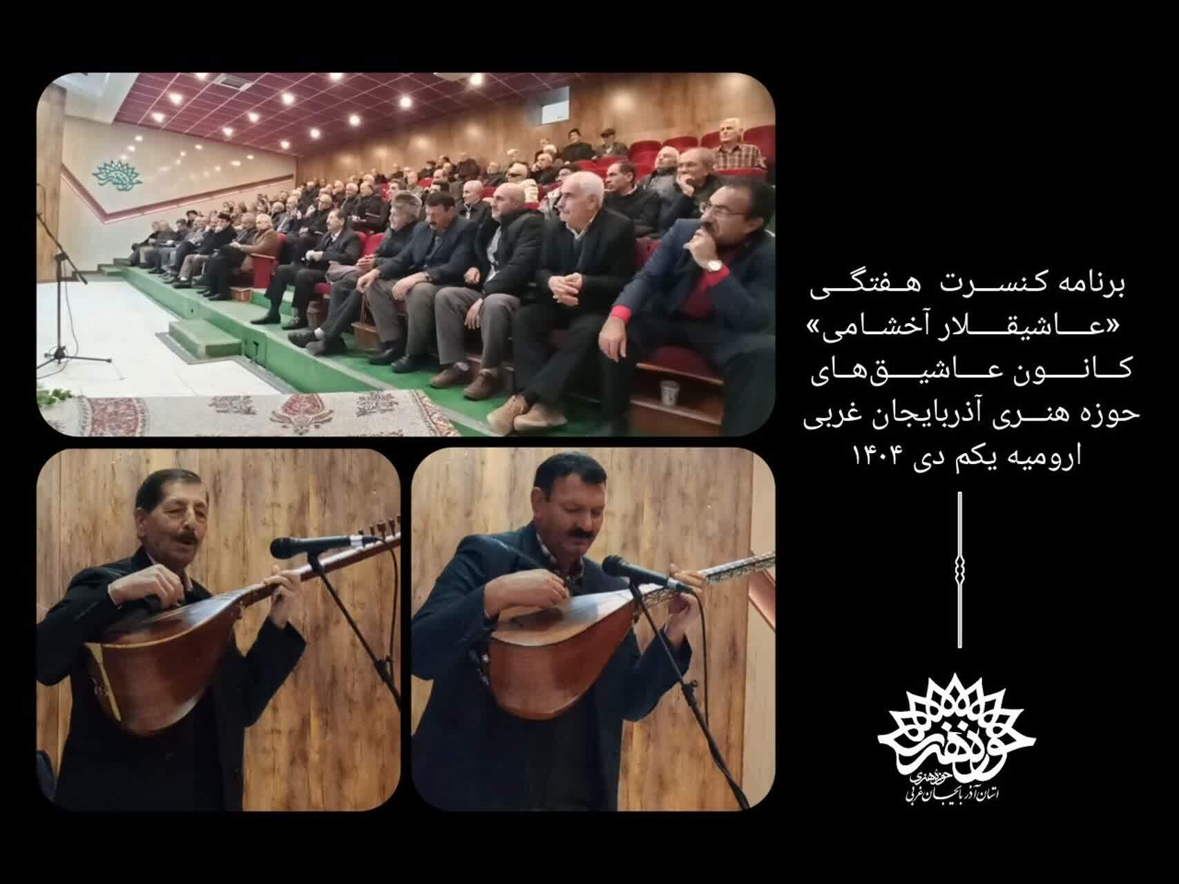 به گزارش روابط عمومی حوزه هنری آذربایجان غربی در این برنامه که ۶۹۲مین کنسرت موسیقی عاشیقی « عاشیقلار آخشامی »در ارومیه بود، هنرمندان عاشیق با نوای دلنشین ساز خود دقایقی شیرین و خاطر انگیز را برای علاقمندان و مشتاقان این هنر خلق کرده و در سبک های مختلف موسیقی عاشیقی آذربایجان مقام های گوناگون را اجرا کردند.