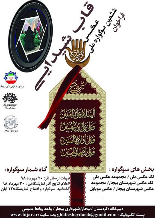 حوزه هنری انقلاب اسلامی استان کردستان با همکاری و مشارکت شهرداری و شورای اسلامی شهر بیجار ششمین سوگواره ملی عکس قاب شیدایی را برگزار می کند.